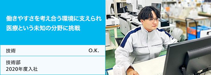 これまで同様の業務を行いつつ、シスメックス千葉営業所担当として作業案件のスケジュール調整、運送手配を担当。血算システム機・大型凝固、免疫など対応可能な機器・分野の幅をさらに広げつつ、後輩社員の育成・フォローも実施。 |